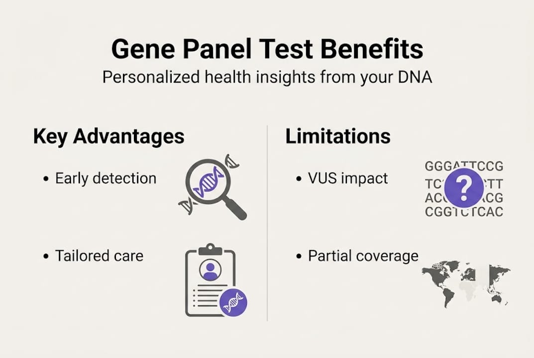 | Comprehensive risk detection | Gene panel testing identifies inherited risks that family history alone may miss. |