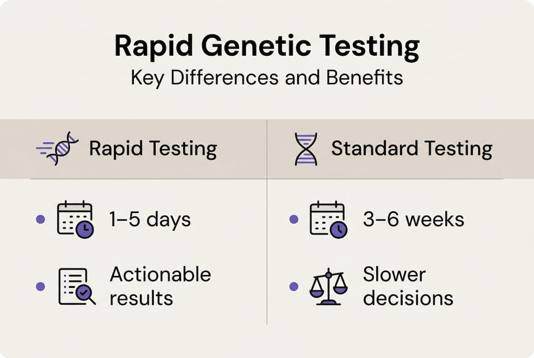 The bottom line: rapid genetic testing is not just a faster version of the same thing. It is a fundamentally different tool with unique clinical applications.